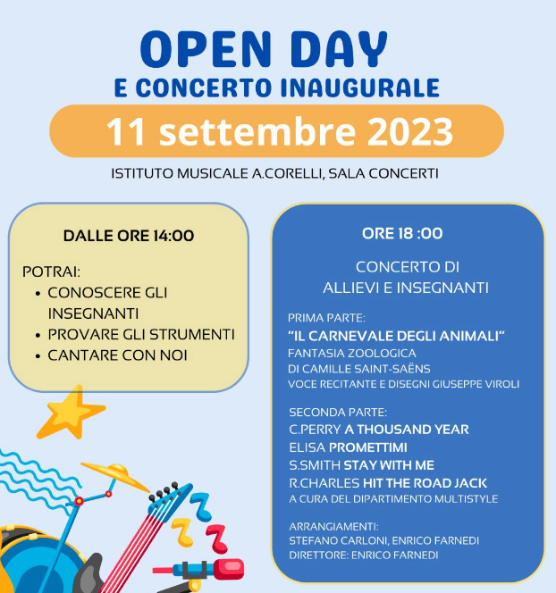 Archivio eventi Tutti Concerti Seminari e masterclass Convegni e presentazioni Rassegne Calendario Tutte cesena rimini Filtri tipo Tutti Concerti Seminari e masterclass Convegni e presentazioni Rassegne Calendario Filtri sede Tutte cesena rimini 2024 13 feb MUSICANTI DI BREMA H • alle ore 18:00 Istituto Corelli, Auditorium • Cesena Ingresso libero fino ad esaurimento posti 30 gen CONCERTO PER LA MEMORIA H • alle ore 18:30 Foyer del Teatro Bonci • Cesena Ingresso libero fino ad esaurimento posti 17 gen IL LISCIO, UNA SINFONIA PER TUTTI H • alle ore 21:00 Teatro Verdi • Cesena Ingresso libero fino ad esaurimento posti 2023 22 dic CONCERTO DI NATALE 2023 H • alle ore 20:30 Teatro Bonci • Cesena Ingresso libero fino ad esaurimento posti 18 dic MADERNA WIND ORCHESTRA H • alle ore 21:00 Teatro Bonci • Cesena 14 dic Wind Orchestra CONCERTO DI NATALE H • alle ore 21:00 Chiesa di S. Domenico • Cesena 11 nov In ricordo del M° Paolo Fantini H • alle ore 17:00 Conservatorio, Auditorium • Rimini 27 ott "ZEPHIRO TORNA" H • alle ore 21:00 Chiesa di S. Cristina • Cesena Ingresso libero fino ad esaurimento posti 14 ott Il Ballo delle Ingrate H • alle ore 21:00 Chiesa di S. Cristina • Cesena Ingresso libero fino ad esaurimento posti 11 set Open Day Corelli H • alle ore 18:00 Istituto Corelli, Auditorium • Cesena 20 lug ASMI Chamber Orchestra e Conservatorio Lettimi al Teatro Galli H • alle ore 21:00 Teatro Galli • Rimini 11 lug Musica tra l'antico e il nuovo mondo H • alle ore 21:00 Ex Chiesa dello Spirito Santo • Cesena Ingresso libero fino ad esaurimento posti Prima pagina Primo Pagina precedente … Pagina 7 Pagina 8 Pagina 9 Pagina 10 Pagina attuale 11 Pagina 12 Pagina 13 Pagina 14 Pagina 15 … Pagina successiva Ultima pagina Ultimo