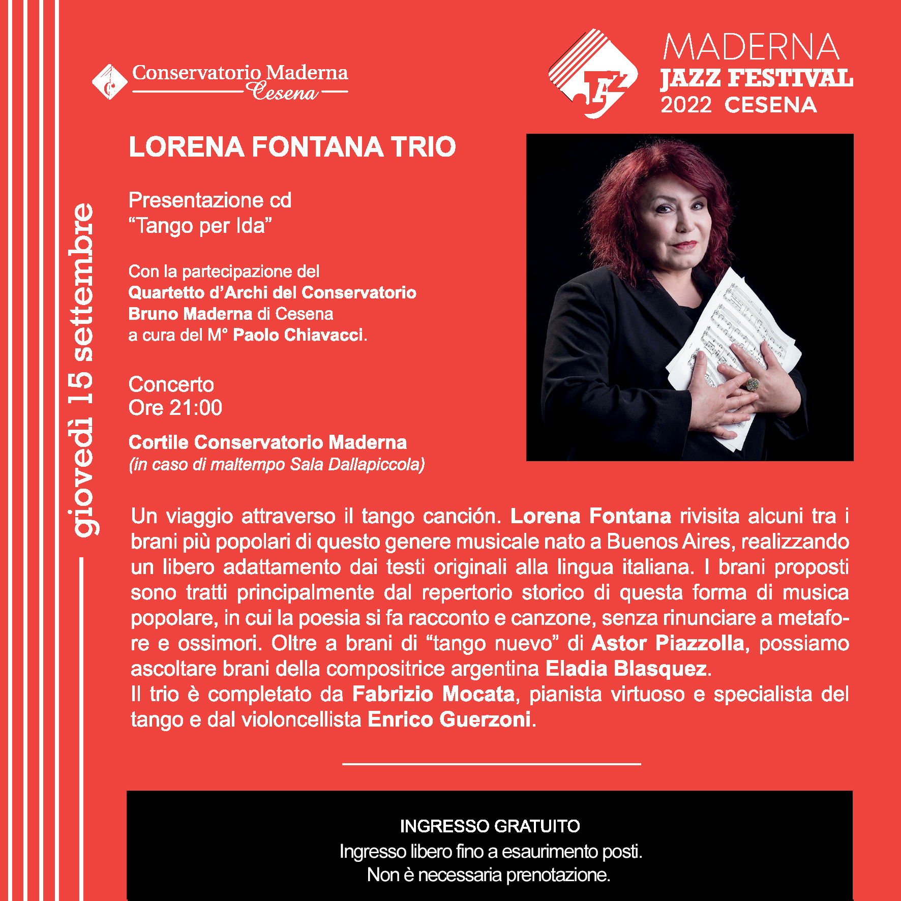 Archivio eventi Tutti Concerti Seminari e masterclass Convegni e presentazioni Rassegne Calendario Tutte cesena rimini Filtri tipo Tutti Concerti Seminari e masterclass Convegni e presentazioni Rassegne Calendario Filtri sede Tutte cesena rimini 2022 09 dic “…ballare di architettura!” H • alle ore 18:00 Teatro Bonci • Cesena 20 nov Giornate Italiane del cornetto H • alle ore 21:00 Chiesa di S. Domenico • Cesena Ingresso libero fino ad esaurimento posti 06 nov Bach Händel Vivaldi H • alle ore 20:30 Sala EmilioPi Eliseo ArtLab • Cesena Ingresso libero fino ad esaurimento posti 20 ott SCENE DAL DON GIOVANNI H • alle ore 20:30 Teatro Verdi • Cesena Ingresso libero fino ad esaurimento posti 13 ott Concerto d'organo H • alle ore 21:00 Chiesa di S. Bartolo • Cesena Ingresso libero fino ad esaurimento posti 11 ott Concerto finale H • alle ore 20:00 Conservatorio, Sala Dallapiccola • Cesena Ingresso libero fino ad esaurimento posti 01 ott opera lirica SUOR ANGELICA H • alle ore 21:00 Teatro Bonci • Cesena Ingresso libero fino ad esaurimento posti 18 set Big Band del Conservatorio B. Maderna H • alle ore 21:00 Teatro Verdi • Cesena 18 set Antiqva Metropoli H • alle ore 18:00 Ingresso libero fino ad esaurimento posti 16 set Michele Francesconi Trio Seasons H • alle ore 21:00 Conservatorio, Corte interna • Cesena 15 set Lorena Fontana Trio H • alle ore 21:00 Conservatorio, Corte interna • Cesena 14 set Paolo Ghetti Melody Quartet H • alle ore 21:00 Conservatorio, Corte interna • Cesena Prima pagina Primo Pagina precedente … Pagina 13 Pagina 14 Pagina 15 Pagina 16 Pagina attuale 17 Pagina 18 Pagina 19 Pagina 20 Pagina 21 … Pagina successiva Ultima pagina Ultimo