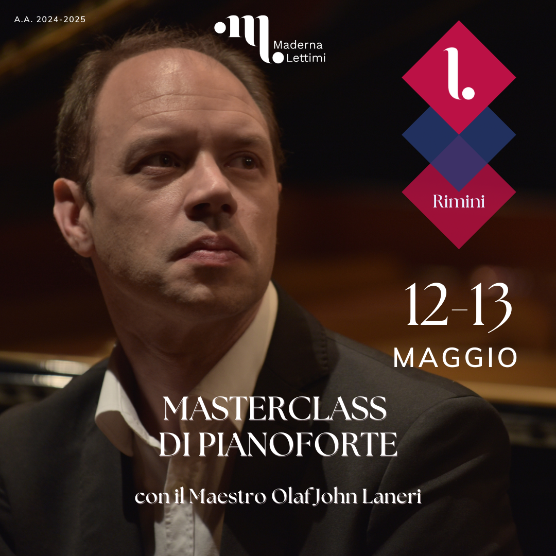 Archivio eventi Tutti Concerti Seminari e masterclass Convegni e presentazioni Rassegne Calendario Tutte cesena rimini Filtri tipo Tutti Concerti Seminari e masterclass Convegni e presentazioni Rassegne Calendario Filtri sede Tutte cesena rimini 2025 04 giu Computational Creativity for Music and the Arts H • alle ore 09:00 Conservatorio, Sala Dallapiccola • Cesena Iscrizione a numero chiuso previa iscrizione 03 giu M° Igor Roma, masterclass di pianoforte Conservatorio, Auditorium • Rimini iscrizione obbligatoria 27 mag BILL’S HIT TUNE H • alle ore 11:00 Conservatorio (sede Lettimi) • Rimini ingresso libero fino ad esaurimento posti 21 mag M° Andrea Lucchesini, masterclass di pianoforte e concerto H • alle ore 09:00 Conservatorio, Sala Dallapiccola • Cesena Iscrizione a numero chiuso 21 mag M° Claudio Marcotulli, masterclass e concerto H • alle ore 09:00 Conservatorio, Auditorium • Rimini Iscrizione a numero chiuso 13 mag Nat King Cole – La voce di velluto H • alle ore 15:30 Conservatorio, Sala Dallapiccola • Cesena ingresso libero fino ad esaurimento posti 12 mag M° Olaf John Laneri, masterclass di pianoforte Conservatorio, Auditorium • Rimini iscrizione obbligatoria 28 apr M° Francesco Libetta, masterclass di pianoforte Conservatorio, Auditorium • Rimini iscrizione obbligatoria 16 apr L’EVOLUZIONE DELLA SCRITTURA CHITARRISTICA H • alle ore 15:00 Conservatorio, Auditorium • Rimini Accesso libero fino a esaurimento posti 12 apr Masterclass di Chitarra con Giacomo Susani H • alle ore 09:30 Conservatorio, Sala Dallapiccola • Cesena Iscrizione a numero chiuso 21 feb Corso di GYROKINESIS con Laura Catrani H • alle ore 17:00 Conservatorio, Biblioteca • Rimini Iscrizione a numero chiuso (max 18 partecipanti) 11 apr Risonanze matematiche Conservatorio, Auditorium • Rimini Accesso libero fino a esaurimento posti Prima pagina Primo Pagina precedente Pagina 1 Pagina 2 Pagina 3 Pagina attuale 4 Pagina 5 Pagina 6 Pagina 7 Pagina 8 Pagina 9 … Pagina successiva Ultima pagina Ultimo