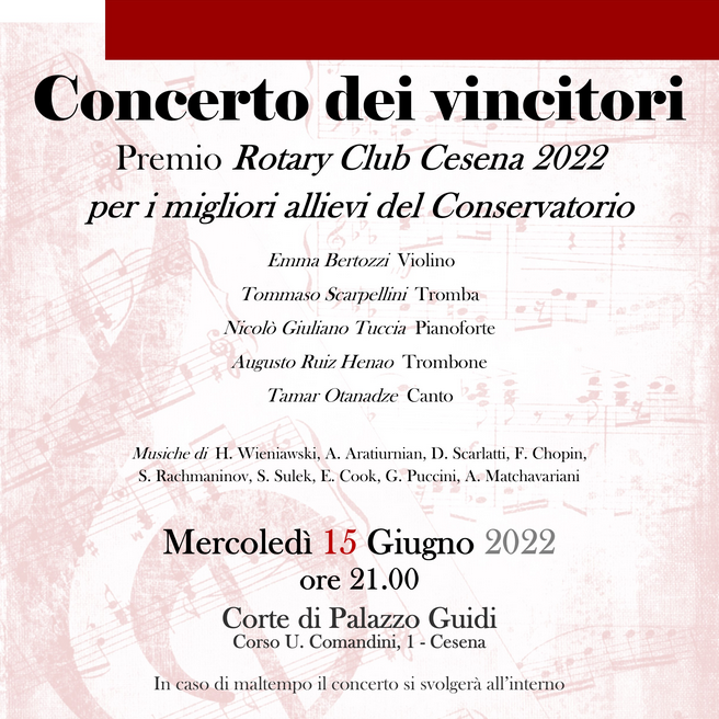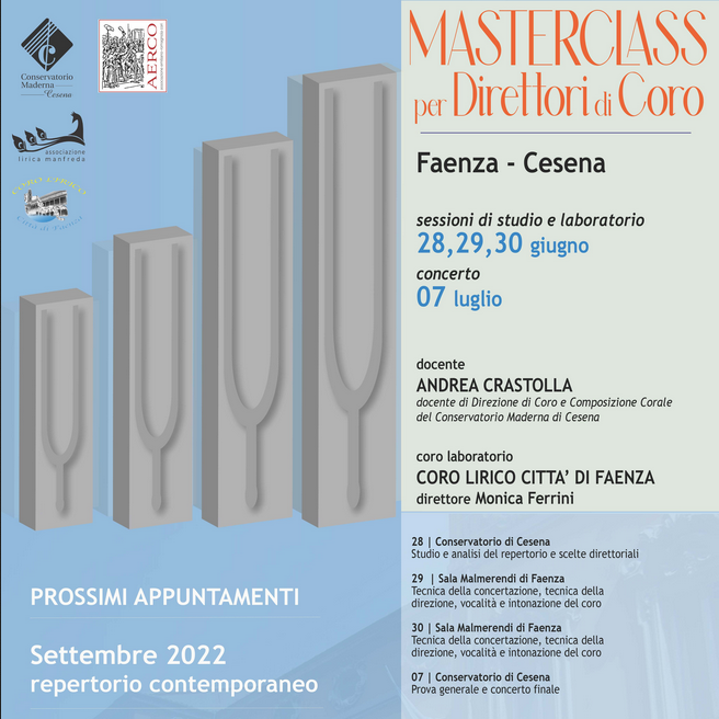 Archivio eventi Tutti Concerti Seminari e masterclass Convegni e presentazioni Rassegne Calendario Tutte cesena rimini Filtri tipo Tutti Concerti Seminari e masterclass Convegni e presentazioni Rassegne Calendario Filtri sede Tutte cesena rimini 2022 29 giu KAMMERMUSIK H • alle ore 18:00 Conservatorio, Corte interna • Cesena Ingresso libero fino ad esaurimento posti 28 giu KAMMERMUSIK H • alle ore 18:00 Conservatorio, Corte interna • Cesena Ingresso libero fino ad esaurimento posti 28 giu Masterclass per Direttori di Coro 22 giu I MUSICI MALATESTIANI H • alle ore 18:00 Conservatorio, Corte interna • Cesena Ingresso libero fino ad esaurimento posti 21 giu Wind Symphony Orchestra H • alle ore 21:30 Arena San Biagio • Cesena Ingresso libero fino ad esaurimento posti 21 giu KAMMERMUSIK H • alle ore 18:00 Conservatorio, Corte interna • Cesena Ingresso libero fino ad esaurimento posti 20 giu KAMMERMUSIK H • alle ore 21:00 Conservatorio, Corte interna • Cesena Ingresso libero fino ad esaurimento posti 20 giu KAMMERMUSIK H • alle ore 18:00 Conservatorio, Corte interna • Cesena Ingresso libero fino ad esaurimento posti 19 giu Big Band del Conservatorio B. Maderna H • alle ore 21:00 Biblioteca Malatestiana, Chiostro di S. Francesco • Cesena 19 giu I MUSICI MALATESTIANI H • alle ore 18:00 Conservatorio, Corte interna • Cesena Ingresso libero fino ad esaurimento posti 15 giu Concerto dei vincitori Premio Rotary Club Cesena 2022 H • alle ore 21:00 Conservatorio, Corte interna • Cesena Ingresso libero fino ad esaurimento posti 14 giu La conversione di Maddalena H • alle ore 21:00 Basilica di S. Rufillo, Forlimpopoli Ingresso libero fino ad esaurimento posti Prima pagina Primo Pagina precedente … Pagina 28 Pagina 29 Pagina 30 Pagina 31 Pagina attuale 32 Pagina 33 Pagina 34 Pagina 35 Pagina 36 … Pagina successiva Ultima pagina Ultimo