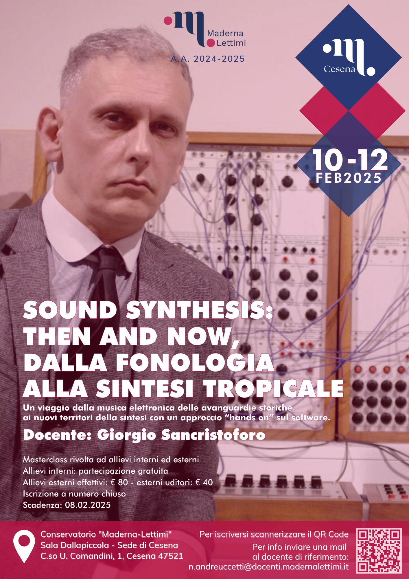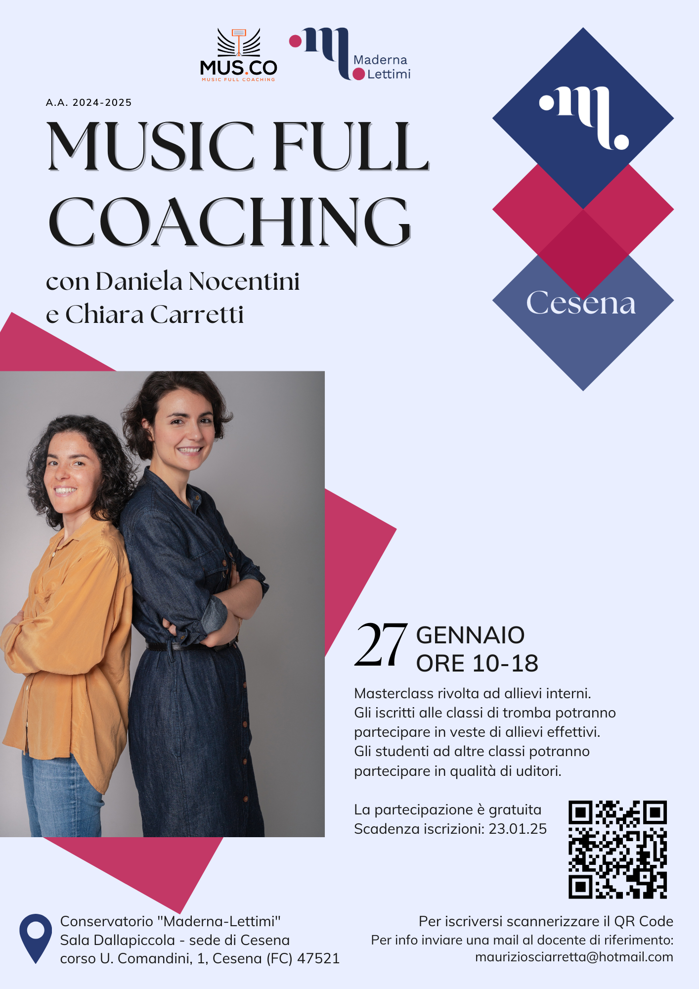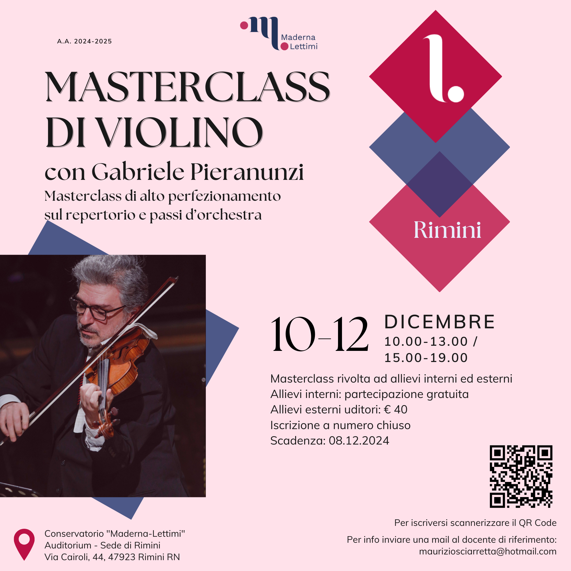 Archivio eventi Tutti Concerti Seminari e masterclass Convegni e presentazioni Rassegne Calendario Tutte cesena rimini Filtri tipo Tutti Concerti Seminari e masterclass Convegni e presentazioni Rassegne Calendario Filtri sede Tutte cesena rimini 2025 24 feb M° Tomasz Tomaszewki, masterclass di violino Conservatorio, Auditorium • Rimini Iscrizione a numero chiuso 22 feb Le musiciste nella storia e nella società H • alle ore 14:30 Conservatorio, Sala Dallapiccola • Cesena 10 feb MASTERCLASS con GIORGIO SANCRISTOFORO Conservatorio, Sala Dallapiccola • Cesena 06 feb M° Roberto Plano, masterclass di pianoforte e concerto H • alle ore 09:00 Conservatorio, Sala Dallapiccola • Cesena Iscrizione a numero chiuso 27 gen MUSIC FULL COACHING H • alle ore 10:00 Conservatorio, Sala Dallapiccola • Cesena Iscrizione a numero chiuso 13 gen Workshop con Davide Bianchi H • alle ore 10:00 Conservatorio, Auditorium • Rimini Iscrizione a numero chiuso 2024 10 dic Masterclass di violino con Gabriele Pieranunzi H • alle ore 10:00 Conservatorio, Auditorium • Rimini Iscrizione a numero chiuso 27 nov Meeting chitarristico H • alle ore 15:30 Conservatorio, Auditorium • Rimini 10 ott LE DUE MAGDE, IL CANTO TRAGICO PER LA LIBERTÀ H • alle ore 18:00 Conservatorio, Sala Dallapiccola • Cesena Ingresso libero fino ad esaurimento posti 12 giu MASTERCLASS con DAVIDE CABASSI H • alle ore 09:00 Conservatorio, Sala Dallapiccola • Cesena Iscrizione a numero chiuso 21 mag MASTERCLASS con ROBERTO PROSSEDA H • alle ore 09:00 Conservatorio (sede Maderna) • Cesena Iscrizione a numero chiuso 14 mag MASTERCLASS DI CANTO BAROCCO con CLARON MCFADDEN H • alle ore 15:00 Conservatorio (sede Maderna) • Cesena Iscrizione a numero chiuso Prima pagina Primo Pagina precedente … Pagina 2 Pagina 3 Pagina 4 Pagina 5 Pagina attuale 6 Pagina 7 Pagina 8 Pagina 9 Pagina 10 … Pagina successiva Ultima pagina Ultimo