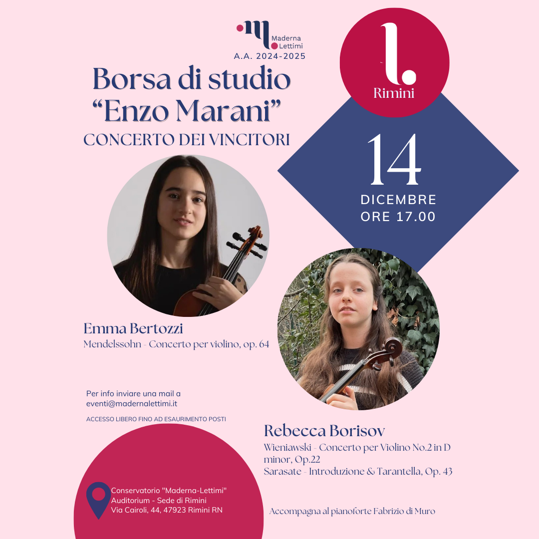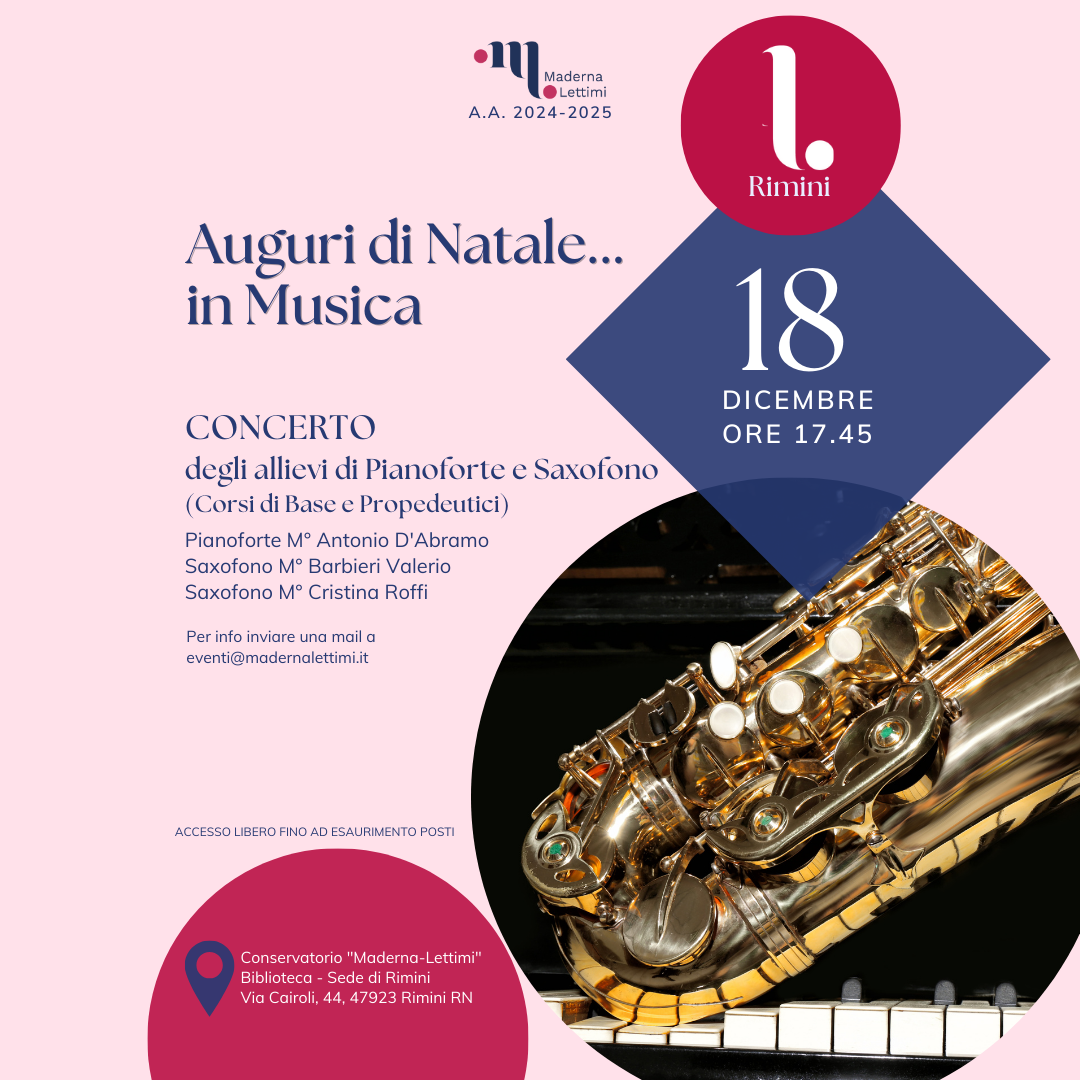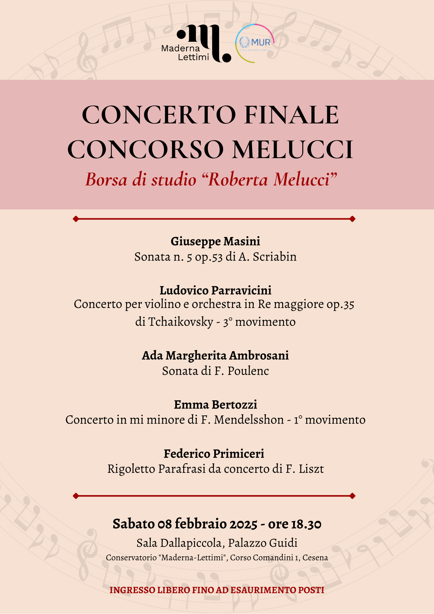 Archivio eventi Tutti Concerti Seminari e masterclass Convegni e presentazioni Rassegne Calendario Tutte cesena rimini Filtri tipo Tutti Concerti Seminari e masterclass Convegni e presentazioni Rassegne Calendario Filtri sede Tutte cesena rimini 2025 20 mar M° Maurizio Baglini, masterclass di pianoforte e concerto H • alle ore 09:00 Conservatorio, Sala Dallapiccola • Cesena Iscrizione a numero chiuso 16 mar La natura poetica della musica romantica H • alle ore 19:00 Teatro Verdi • Cesena Accesso libero fino a esaurimento posti 09 mar The First Lady of Song H • alle ore 17:30 Augeo Art space - Corso d'Augusto 217 - Rimini centro storico • Rimini Ingresso riservato ai soci - info e tesseramento riminijazzclub@gmail.com 06 mar M° Gile Bae, masterclass di pianoforte e concerto H • alle ore 09:00 Conservatorio, Sala Dallapiccola • Cesena Iscrizione a numero chiuso 24 feb M° Tomasz Tomaszewki, masterclass di violino Conservatorio, Auditorium • Rimini Iscrizione a numero chiuso 08 feb CONCERTO FINALE CONCORSO MELUCCI H • alle ore 18:30 Conservatorio, Sala Dallapiccola • Cesena ACCESSO LIBERO FINO AD ESAURIMENTO POSTI 06 feb M° Roberto Plano, masterclass di pianoforte e concerto H • alle ore 09:00 Conservatorio, Sala Dallapiccola • Cesena Iscrizione a numero chiuso 25 gen Giornate Italiane del Cornetto 2025 Conservatorio, Sala Dallapiccola • Cesena Iscrizione a numero chiuso ai corsi - Conferenze ad accesso libero 2024 18 dic Auguri di Natale... in Musica H • alle ore 17:45 Conservatorio, Biblioteca • Rimini Accesso libero fino a esaurimento posti 14 dic Concerto Borsa di studio "Enzo Marani" H • alle ore 17:00 Conservatorio, Auditorium • Rimini Accesso libero fino a esaurimento posti 11 ott La Rondine di G.Puccini a Rimini H • alle ore 20:00 Teatro Galli • Rimini 10 lug CONCERTO DI CHITARRE H • alle ore 19:00 Chiesa di S. Cristina • Cesena Prima pagina Primo Pagina precedente … Pagina 3 Pagina 4 Pagina 5 Pagina 6 Pagina attuale 7 Pagina 8 Pagina 9 Pagina 10 Pagina 11 … Pagina successiva Ultima pagina Ultimo
