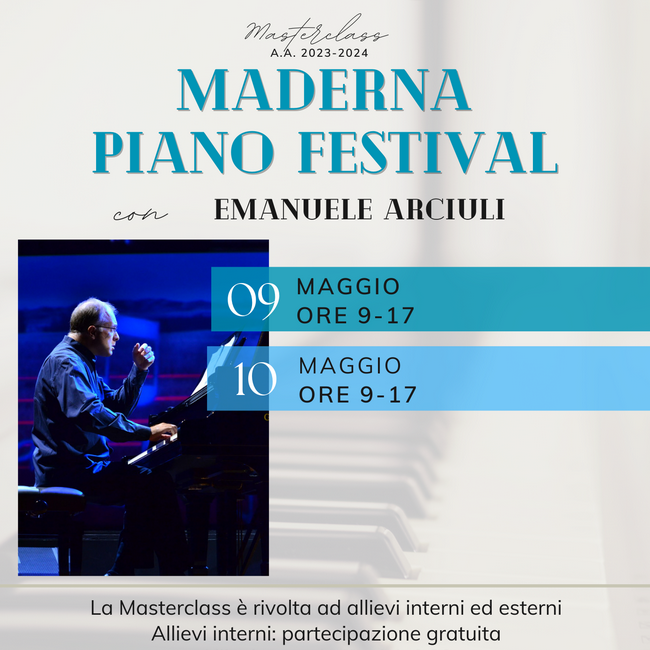 Archivio eventi Tutti Concerti Seminari e masterclass Convegni e presentazioni Rassegne Calendario Tutte cesena rimini Filtri tipo Tutti Concerti Seminari e masterclass Convegni e presentazioni Rassegne Calendario Filtri sede Tutte cesena rimini 2024 09 mag MASTERCLASS con EMANUELE ARCIULI H • alle ore 09:00 Conservatorio (sede Maderna) • Cesena Iscrizione a numero chiuso 02 mag MASTERCLASS DI TROMBA con ROBERTO ROSSI H • alle ore 11:00 Conservatorio, Sala Dallapiccola • Cesena 27 apr “ …di tromboni per sonarli in concerto” H • alle ore 10:30 Conservatorio (sede Maderna) • Cesena 18 apr MASTERCLASS DI CHITARRA con PAOLO PEGORARO H • alle ore 14:00 Conservatorio (sede Maderna) • Cesena Iscrizione a numero chiuso 18 apr INCONTRO con PAOLO PEGORARO H • alle ore 10:00 Conservatorio (sede Maderna) • Cesena 17 apr SEMINARIO DELLA TRASCRIZIONE H • alle ore 09:30 Conservatorio (sede Maderna) • Cesena 16 apr MASTERCLASS DI CHITARRA con MARCO RAMELLI H • alle ore 14:00 Conservatorio (sede Maderna) • Cesena Iscrizione a numero chiuso 15 apr Seminario sulle Onde Sonore Gravitazionali H • alle ore 15:00 Conservatorio, Sala Dallapiccola • Cesena Ingresso libero fino ad esaurimento posti 15 apr MASTERCLASS DI TROMBA con RUDOLF LÖRINC H • alle ore 14:00 Conservatorio, Sala Dallapiccola • Cesena Iscrizione a numero chiuso 09 apr MASTERCLASS con ENRICO BAIANO H • alle ore 14:00 Conservatorio (sede Maderna) • Cesena Iscrizione a numero chiuso 08 apr MASTERCLASS DI CONTRABBASSO con STEFANO PRATISSOLI H • alle ore 10:00 Conservatorio (sede Maderna) • Cesena 08 apr MASTERCLASS DI CHITARRA con PIETRO LOCATTO H • alle ore 09:30 Conservatorio (sede Maderna) • Cesena Iscrizione a numero chiuso Prima pagina Primo Pagina precedente … Pagina 3 Pagina 4 Pagina 5 Pagina 6 Pagina attuale 7 Pagina 8 Pagina 9 Pagina 10 Pagina 11 … Pagina successiva Ultima pagina Ultimo
