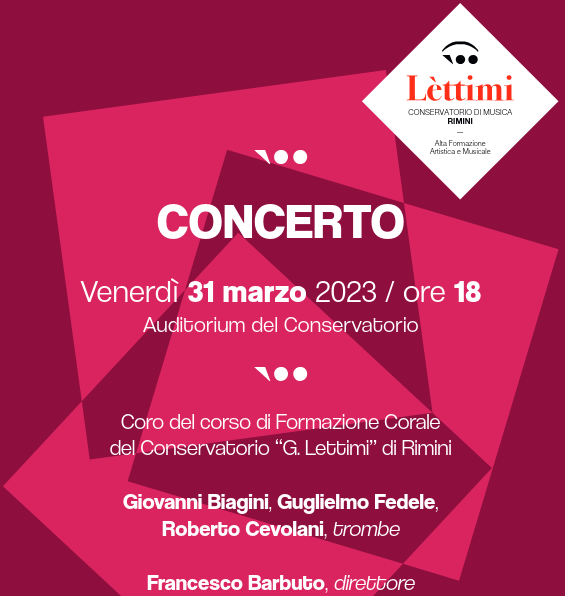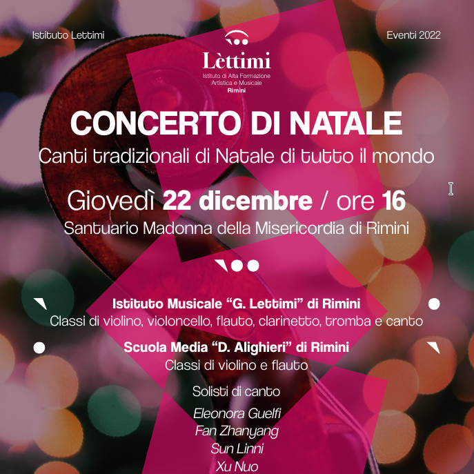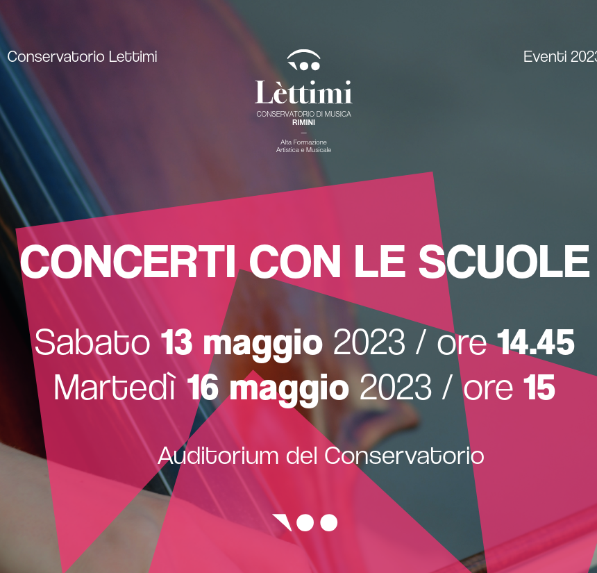 Archivio eventi Tutti Concerti Seminari e masterclass Convegni e presentazioni Rassegne Calendario Tutte cesena rimini Filtri tipo Tutti Concerti Seminari e masterclass Convegni e presentazioni Rassegne Calendario Filtri sede Tutte cesena rimini 2023 26 mag Mezza maratona violinistica H • alle ore 17:30 Conservatorio, Biblioteca • Rimini 20 mag Concerto di archi H • alle ore 15:00 Conservatorio, Auditorium • Rimini 13 mag Concerti con Scuole Medie del territorio H • alle ore 14:45 Conservatorio (sede Lettimi) • Rimini 12 mag Concerto della classe di flauto H • alle ore 18:00 Conservatorio, Biblioteca • Rimini 03 apr Concerto "Il Lettimi incontra l'indirizzo musicale della Media D. Alighieri di Rimini" H • alle ore 15:00 Conservatorio, Auditorium • Rimini 31 mar Concerto corale H • alle ore 18:00 Conservatorio, Auditorium • Rimini 06 mar Scuole Medie riminesi al Lettimi H • alle ore 09:30 Rimini 24 feb Maratona violinistica H • alle ore 16:30 Conservatorio, Biblioteca • Rimini 18 feb Marchinha de carnaval H • alle ore 17:00 Conservatorio, Biblioteca • Rimini 2022 22 dic Conservatorio Lettimi, Concerto di Natale H • alle ore 16:00 Santuario Madonna della Misericordia • Rimini 17 dic Cerimonia di presentazione del Conservatorio Statale di Musica "G. Lettimi" di Rimini H • alle ore 11:00 Conservatorio (sede Lettimi) • Rimini 12 dic Progetto fREADom – Club del libro - Liceo Valgimigli Rimini Prima pagina Primo Pagina precedente Pagina 1 Pagina 2 Pagina 3 Pagina 4 Pagina 5 Pagina 6 Pagina 7 Pagina attuale 8 Pagina 9 Pagina successiva Ultima pagina Ultimo