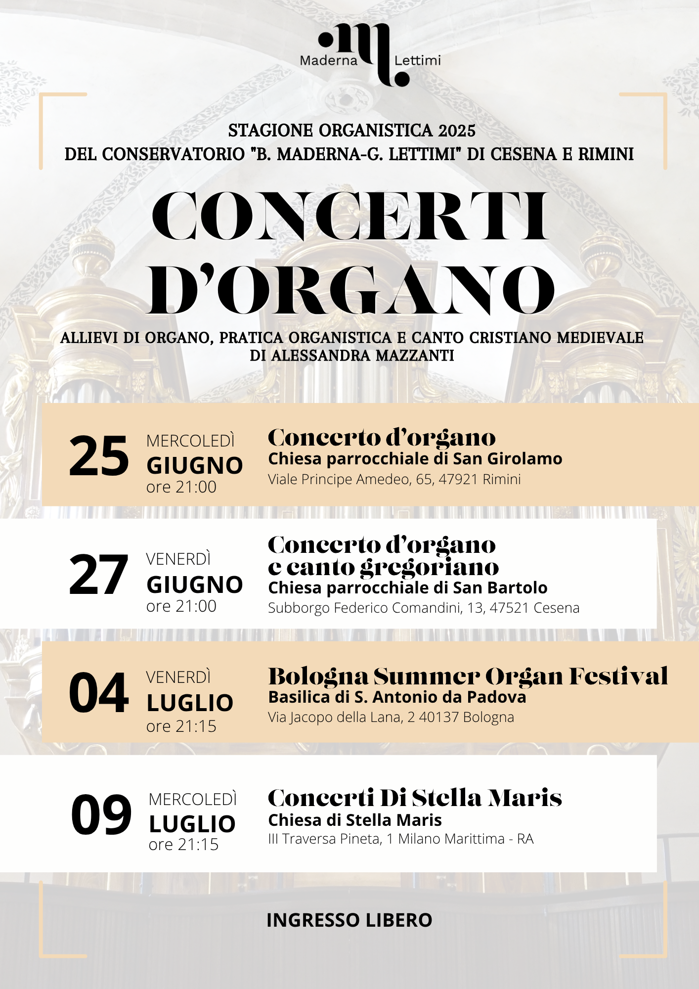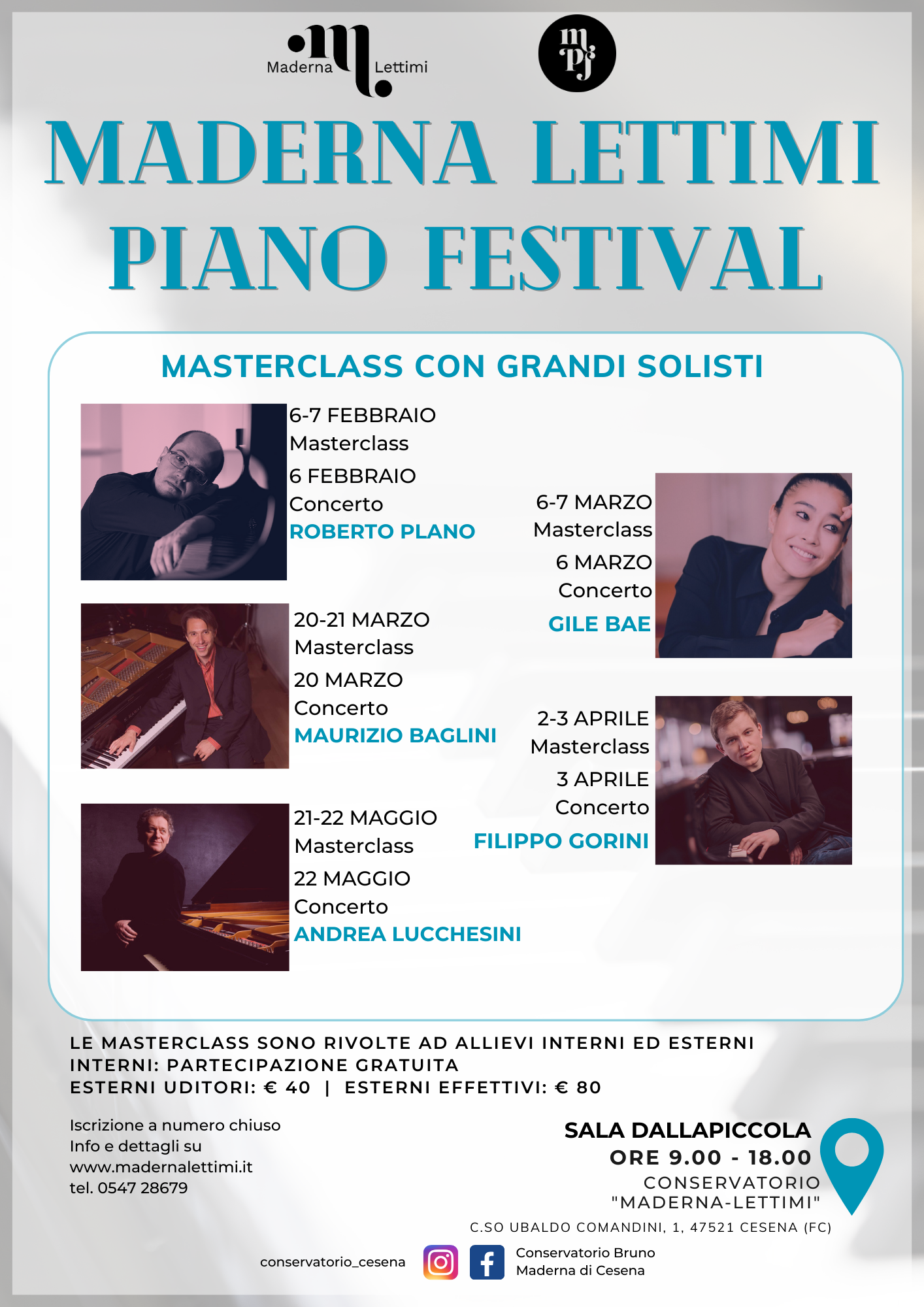 Rassegne Maderna-Lettimi Piano Festival 2025 5 EVENTI Al Centro della Musica 2025 Guitaromanie 2025 4 EVENTI Donizetti e le donne emancipate 4 EVENTI Stagione Organistica 2025 4 EVENTI CesenAntica 2025 1 EVENTO CESENANTICA I edizione 10 EVENTI Clarinet days - IX edizione 9 EVENTI CLARINET DAYS - X EDIZIONE 5 EVENTI GUITAROMANIE 2024 |"Al Centro della musica" 8 EVENTI Il Conservatorio suona in Città 2022 16 EVENTI Maderna Jazz Festival 2021 10 EVENTI Prima pagina Primo Pagina precedente Pagina 1 Pagina attuale 2 Pagina 3 Pagina successiva Ultima pagina Ultimo